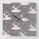 Pink & Grey Couture Ballerina Girls Bedroom Square Wall Clock