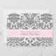 Personalised baby shower invitations in elegant and modern light blush pink, grey and white classic and vintage floral damask pattern. Customisable with your text, contact us to request a colour change.