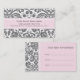 Salon or spa appointment business cards in elegant and vintage floral damask pattern in modern light blush pink, charcoal grey and white. Customisable with your contact details, stylish and contemporary. Contact us for a custom colour.