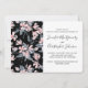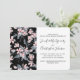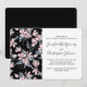 A virtual wedding inivtation with an elegant pattern made with a watercolor illustration of pink flowers with blue-grey leaves and stems.