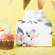 Wrapping paper with a pretty watercolor illustration of pink flowers with grey leaves on a single stem. A modern elegant botanical design.