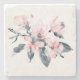 A stone coaster with a pretty watercolor illustration of pink flowers with grey leaves on a single stem. A modern elegant botanical design.