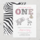 Pink Grey Jungle Safari First Birthday For Girl Invitation