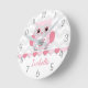 Pink Grey Owl Wall Clock