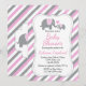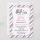 Pink & Grey Stripes Elephant | Baby Shower Invitation