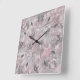 Pink grey stylish large flowers square wall clock