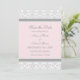 Wedding save the date announcement card with elegant light blush pink, grey and white floral damask pattern. Customisable with your wedding details, available in a wide range of matching wedding products. Contact us to request a colour change or a custom product.