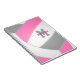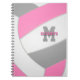 This cute volleyball themed spiral notebook features the realistic image of an abstractly oversized pink, grey and white volleyball - athlete's name and monogram, varsity letter, or jersey number are customisable - by katz_d_zynes
