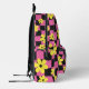 Pink Groovy Daisy Floral Chequerboard Printed Backpack