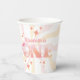 Celebrate with these Cute Groovy Disco Themed Dancing Queen First Birthday paper cups! Cute Dancing Queen Disco Party theme for an unforgettable 1st birthday celebration! Colours of pinks, peaches and oranges with retro fonts, disco ball, and faux glitter. Customise these paper cups with the guest of honour's name. Available in multiple sizes and shapes.