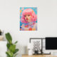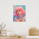 The background of the artwork is a harmonious blend of soft colour and dynamic hues, creating a dreamlike atmosphere that complements the central figure. Subtle textures and layers add depth, allowing the viewer to feel as though they are stepping into a whimsical realm where reality and fantasy intertwine. The interplay of light and shadow enhances the woman's features, highlighting her delicate facial structure and the flowing strands of her pink hair, which seem to dance with an ethereal form.