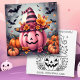 Pink Halloween Pumpkin & Colouring Page Personalis Card