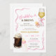 Pink Hand-Drawn Quirky Baby Shower Invitation, Bubbles and Brews Girl Baby Shower Invite, Editable Pink Coquette Bow Baby Shower