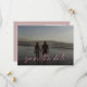 Beautiful calligraphy lettering in pink to overlay your photo save the date card. This is beautiful typography on a full bleed one card photo with white lettering. It includes a light gradient overlay if your photo needs it behind the text. You can keep or delete the soft gradient if you don't need it.