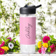 Pink Handwritten Text Elegant Water Bottle