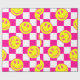 pink happy face check groovy, chess board, chequered board, happy face pattern, happy face print, happy face, retro, vintage, groovy, kidcore