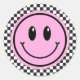 Pink Happy Face Chequered Kids Birthday Classic Round Sticker