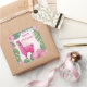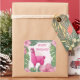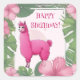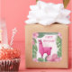 Pink Happy Smiling Lama, this design features a cute and adorable Pink Happy Smiling Lama surrounded by green palm trees and pink tropical flowers.