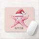 Pink Happy Starfish Santa Hat Mouse Pad