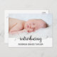 This pink heart black calligraphy birth announcement postcard is perfect for a rustic baby announcement. Personalise the front of the announcement with a sweet photo of your new baby and your baby's full name. Customise the back with the baby's birth stats, your names and return address. The minimalist design for a baby girl features lovely typography and a subtle blush pink heart.