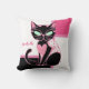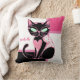 Pink Heart Black Cat Throw Pillow