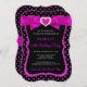 Pink Polka Dots Bow Heart Black White Birthday Party. Teen Girls and Womens sophisticated Invitation. Hot Pink bow with jewel heart. PLEASE NOTE all flat images! They Do NOT have real Bows, Diamonds or Jewels!!