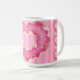 Sweet Pink Heart Doughnut on a Striped Background. Cute Mug for Valentine Treats.