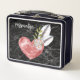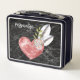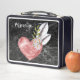 Pink Heart Feathers Black Marble BG Personalized Metal Lunch Box