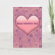A romantic pink retro heart with flowers Valentine's Day card. Card features a large pink heart in the centre which reads 'Happy Valentine's Day' on the front, on a lovely beautiful pink and purple coloured flowery background. This card is available in our store with a Valentine inner greeting or blank inside. For more flirty, romantic and cute note cards and Valentine's Day cards, postage, and gift items please visit our store!