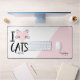 Pink Heart I Love Cats Forever Personalised Desk Mat