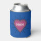 Personalise Mum tattoo can cooler with a pink ribbon edge heart, star, pearls and the word MOM in the centre all in classic tattoo style. You can change the text to any colour or a name on the mug in customise area. A great can cooler to give as a mothers day gift for the Mum your life.