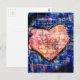 Pink Heart on Blue Mixed Media Art Postcard