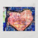 Pink Heart on Blue Paint Mixed Media Art Postcard