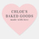 Pink heart personalised bakery pastry chef dessert caterer product stickers. Just add your own name or business name.