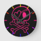Pink Heart Skull and Crossbones Round Clock