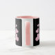 This pretty Valentine's Day mug has a beautiful pink faux glitter heart swirl design against a dramatic black background. The image is printed twice on the mug, with text fields for you to customise at the centre. It shows a Valentine's Day greeting, but you may easily change it to anything you'd like. *Please note - the image is printed and contains no actual glitter.