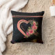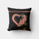 Personalised Pink Heart throw pillow on a dark black background with shades of green and pink and beautifully crafted pink roses.