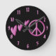 Pink hearts and peace sign wall clock. round clock