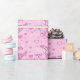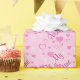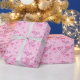 This is a pretty valentine gift wrap paper, with a background of pink stylised hearts and white glitter images on a pale pink background. The text, in darker bright pink, says "Be My Valentine". *Please note--the image is printed on the paper and contains no actual glitter or any metallic substance.*