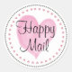 Pretty happy mail stickers featuring a pink heart and little hearts around it. These heart happy mail stickers are a great way to add some fun and branding to your customer's packages.