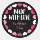 Pink Hearts Made with Love Custom Name Classic Round Sticker