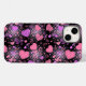 Pink Hearts Pattern 01 Black BG Case-Mate iPhone Case