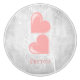 Add an elegant touch to cabinetry or furniture with a Pink Hearts Personalised Ceramic Pull. Pull design features a a pair of hearts, a soft white leafy vine against a light grey grunge background with an area to personalise with your name. Additional gift items available with this design as well as a variety of colours.