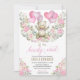 Pink Hearts Teddy Bear Balloons Baby Shower Invitation