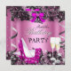 Pink High Heel Champagne Black Lace Birthday Party Invitation