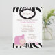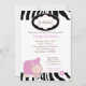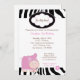 Pink Hippo Zebra Stripe Baby Shower Invitation 5x7