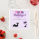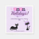 A fun retro design featuring midcentury modern elements with a "Ho Ho Holidays" billboard in various shades of pink and purple and two black cats. Personalize these cocktail napkins with your own Christmas event and your family name(s). You can change the color of the background and the cats to suit your own style. This year, throw a smashing Christmas party!