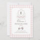 Tee off a stylish first birthday with this pink “Hole in One” invitation, featuring a charming monogram crest and classic gingham pattern. This golf-themed design is perfect for your baby girl’s sporty yet sweet celebration.