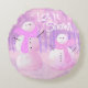 Pink Holiday Christmas Snowman Round Throw Pillow