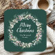 Pink Holly Wreath Merry Christmas Square Paper Coaster